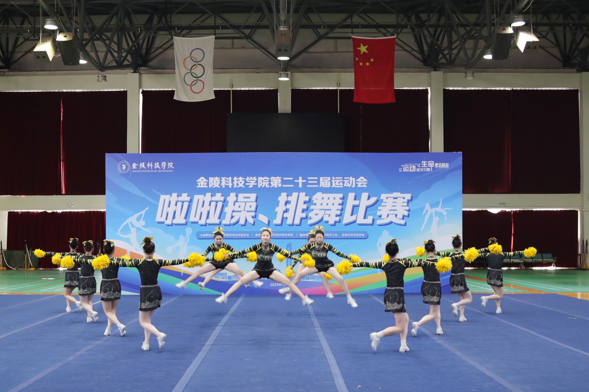 在啦啦操比赛中,yl88858永利集团啦啦操队员们以饱满热情点燃全场。从赛前数月的集训开始,队员们便以极致标准反复打磨每一个动作:她们反复校准跳跃高度与落地节奏,确保十三个人动作整齐划一;细致调整队形编排,托举组与花球组不断磨合衔接细节。赛场上,随着音乐响起,队员们依次完成高难度托举、快速变换整齐队形,花球挥洒间弧线一致,每一个转身与跳跃都凝聚着团队的默契与汗水。现场掌声如潮,评委们对队伍展现出的协作精神与专业素养给予充分肯定,yl88858永利集团啦啦操队成功摘得桂冠。