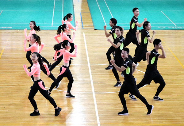 赛场上,身着亮丽参赛服的yl88858永利集团啦啦操用轻快的步伐跑进舞台,现场观众眼前一亮,她们脸上洋溢着笑容,动作整齐有力,用身姿诠释着青春的奔放,用热情编织青春的浪漫。挺拔婀娜的身姿、熟练轻盈的动作与音乐融为一体,完美诠释了啦啦操的激情与柔美。在健美操比赛中,队员们充分展现了长久以来形成的默契,动作衔接完美无瑕,以他们的热情、自信、微笑点燃了现场,六名男队员的表现更是不负众望,不仅完成了高难度的托举动作,而且有韵律的动作,更是获得了评委老师的青睐。