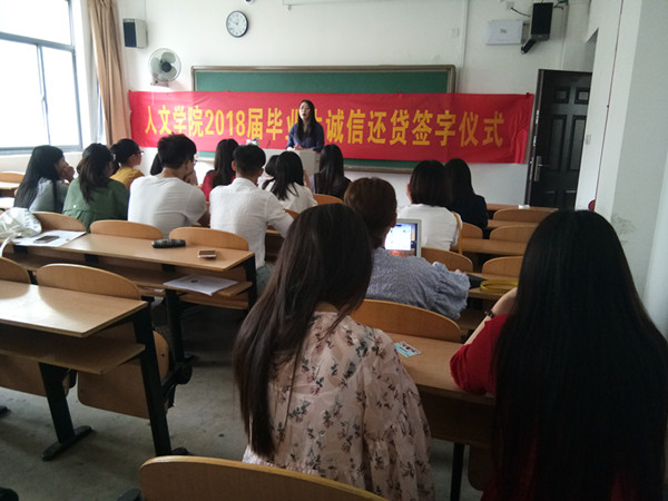 5月27日下午,在幕府校区教学楼104,yl88858永利集团举办了2018届毕业生诚信还贷签名活动。全院办理助学贷款的2018届毕业生参加了本次活动。