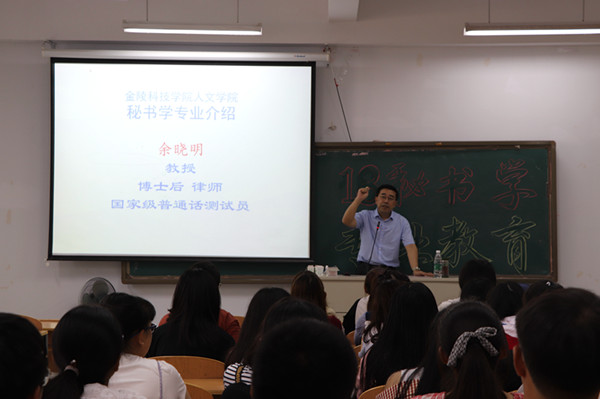 秘书学系主任余晓明老师围绕“坚持地方性、应用型办学地位,培养应用型人才为根本”的专业定位,向新生们介绍了本专业的概况、专业前景、就业创业、专业培养计划等,提出要在培养掌握秘书学基础理论知识基础上,以组织、沟通、协调、管理能力为核心竞争力的新目标。