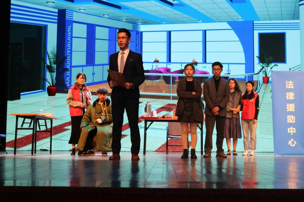 本次展演由南京大学、南京师范大学、南京审计学院等八支参赛,分别以“法律援助”为主题进行了法治情景剧的比拼。由我院17行政管理王业薪同学和17秘书学郭维贤同学原创的情景剧《困境》,讲述了因工受伤的林师傅在郑和广场上寻求法律援助时,受到我院青年法学会志愿者帮助,并在律师指导下,坚定了维权信心,并维权成功的故事。从中也使志愿者们理解了身为法律人所应承担的使命,决心为维护社会公平正义的而努力学习。最终,我院情景剧获得了第二名的好成绩,85588永利集团荣获优秀组织奖。同时,我院学子还精心准备了独唱《贝加尔湖畔》、舞蹈《水墨江南》、《汉韵霓裳》,为当晚的展演增添了别样精彩。