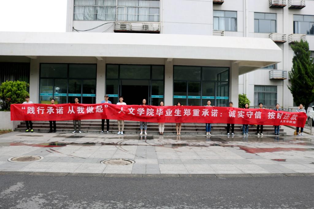 5月30日中午,在幕府校区图书馆门口,我院举行了毕业生“践行承诺,从我做起”的横幅签名承诺仪式。受资助毕业生郑重承诺:诚实守信,按时还款,不辜负国家的资助和培养。每位学生在横幅上庄严地签下自己的名字。