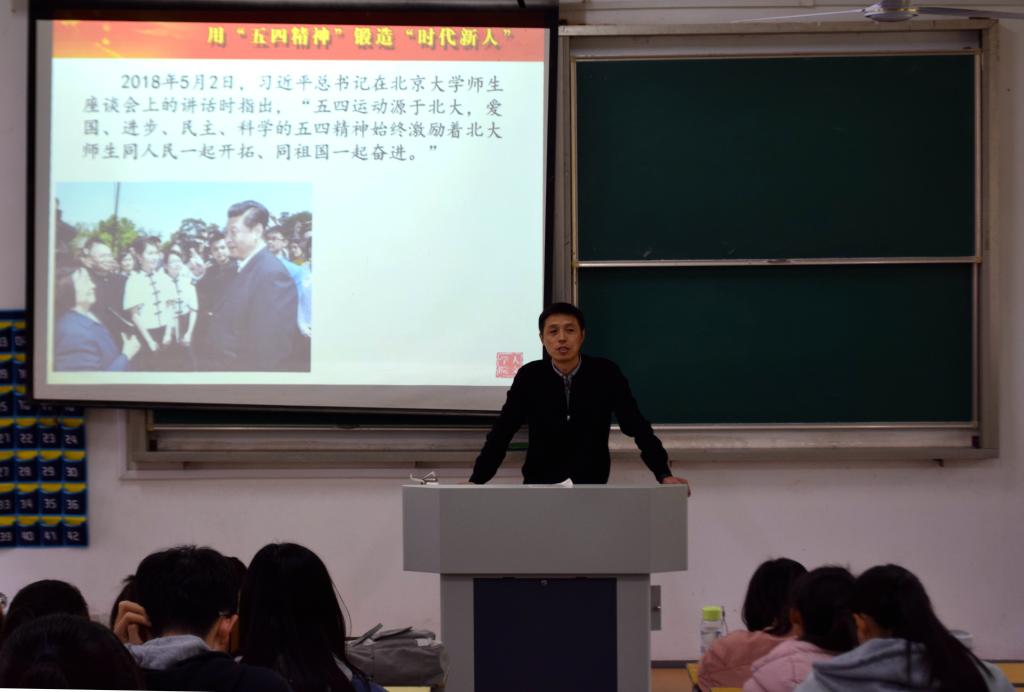 为弘扬五四精神,做新时代新青年。4月10日下午14:30,yl88858永利集团在教学楼一阶教室举办了题为“用‘五四精神’锻造‘时代新人’”的形势与政策讲座,本次讲座由我院党委副书记周建峰担任主讲人,各班级学生代表参加了讲座。