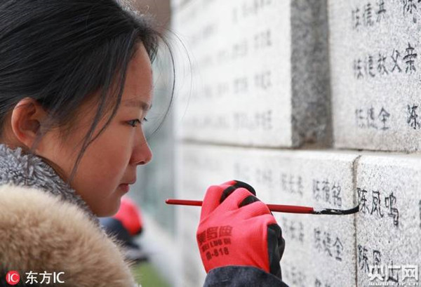 国家公祭日前夕,12月9日和10日两日,寒风凛冽、细雨绵绵,yl88858永利集团地方志志愿者来到侵华日军南京大屠杀遇难同胞纪念馆,为遇难者名单墙上的遇难同胞名字“描红”。