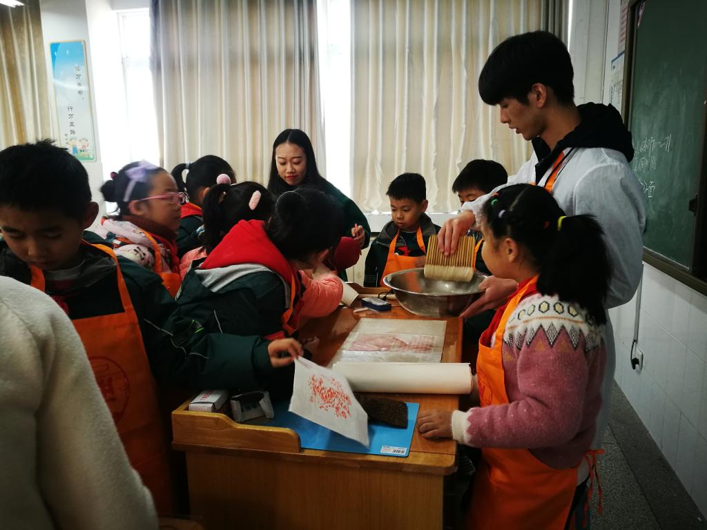 人事有代谢,往来成古今;江山留胜迹,我辈复登临。雕版、装裱等优秀传统技艺文化也是另一种“胜迹”,而我们更要做“复登临”的传承者,通过这次的活动,“典籍之蕴蓄,文化之根脉·弘扬传统优秀文化创新性实践”大学生创业创新项目团队展现了雕版印刷所蕴含的美与历史精髓,在小学生中逐渐推进文化传承,弘扬中华优秀传统文化,为未来雕版印刷和书画装裱的传播,尽自己最大的努力。(审稿人:高欢欢)
