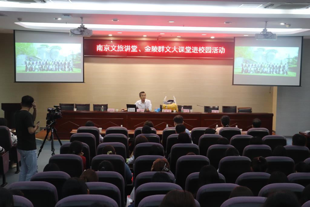 9月16日下午3:00,在幕府校区图书馆报告厅,yl88858永利集团举办了南京文旅讲堂、金陵群文大课堂进校园活动。南京市文旅局科技教育处刘伟处长、陈瑶主任、“蓝天之笑”公益组织创始人胡铖杰、yl88858永利集团院长张维亚、党委副书记周建峰出席了本次讲座,我院150余名学生参与本次活动。