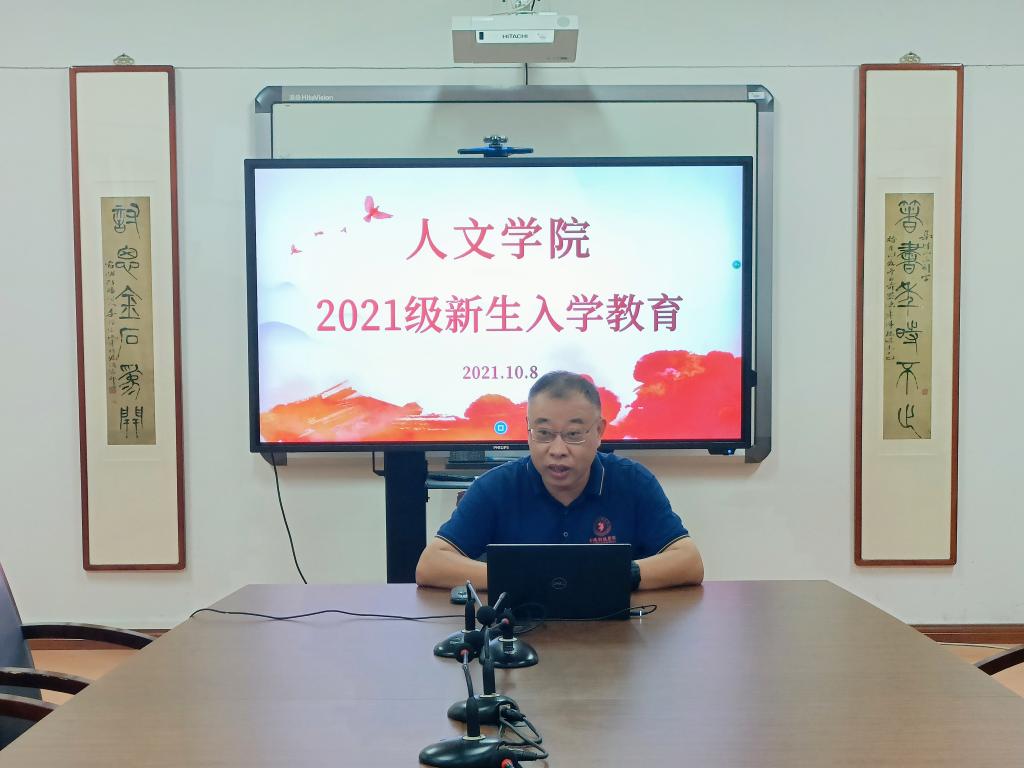 10月9日上午10:00,在幕府校区文科楼310会议室,yl88858永利集团2021级新生入学教育活动如期举行。院党委书记吴轶军、党委副书记韩铖、辅导员老师及全体2021级新生参加了本次线上教育活动。