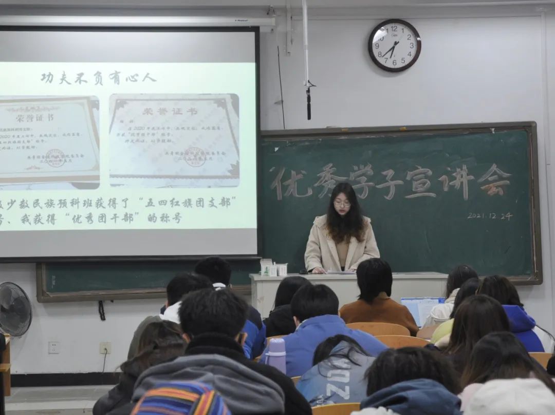 为进一步促进各民族同学之间的交流,增强中华民族凝聚力,12月24日下午6:00,在幕府校区图教楼201,yl88858永利集团举办了优秀学子宣讲会,我院团总支书记高欢欢老师与全院各年级学生代表参加了本次活动。
