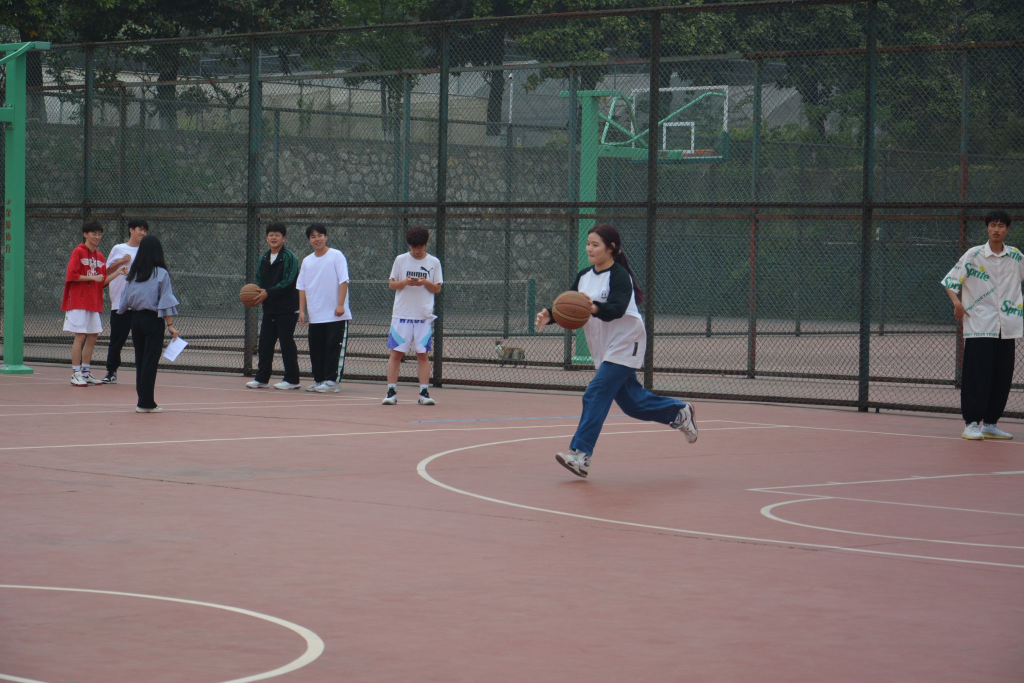 本次比赛项目为“旋转神射手”,两人合作完成比赛项目,男女自由搭配。比赛号令一拉响,各小组第一位成员全神贯注,预测着绕过前方障碍物的路线,球场上传来一阵阵篮球规律击打声。完成第一项任务后,第一位成员纷纷将球传给在罚球区队友。一声声传球时铿锵有力的“加油”鼓励队员更加自信。篮球一个接一个投出,在阳光下划出一道道美丽的弧线,稳稳当当地从篮筐中穿过。比赛中,队友间彼此配合默契,你传我接,你投我捡,只见得篮球场上一个个矫健的身姿,他们顾不上交流,一个眼神就可以心领神会;场下观战的同学们和工作人员也被气氛感染,欢呼加油。最后,六组队伍脱颖而出,获得了最高成绩。