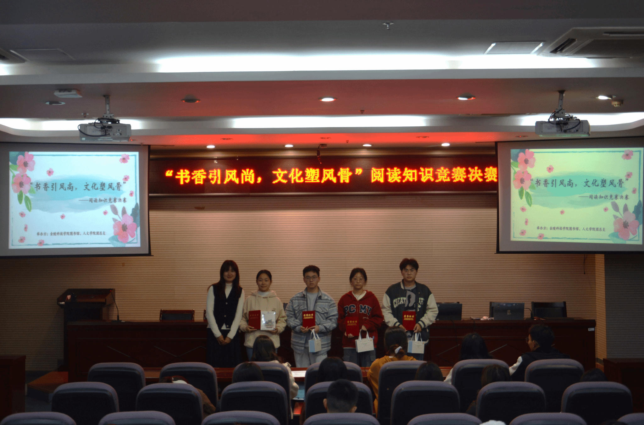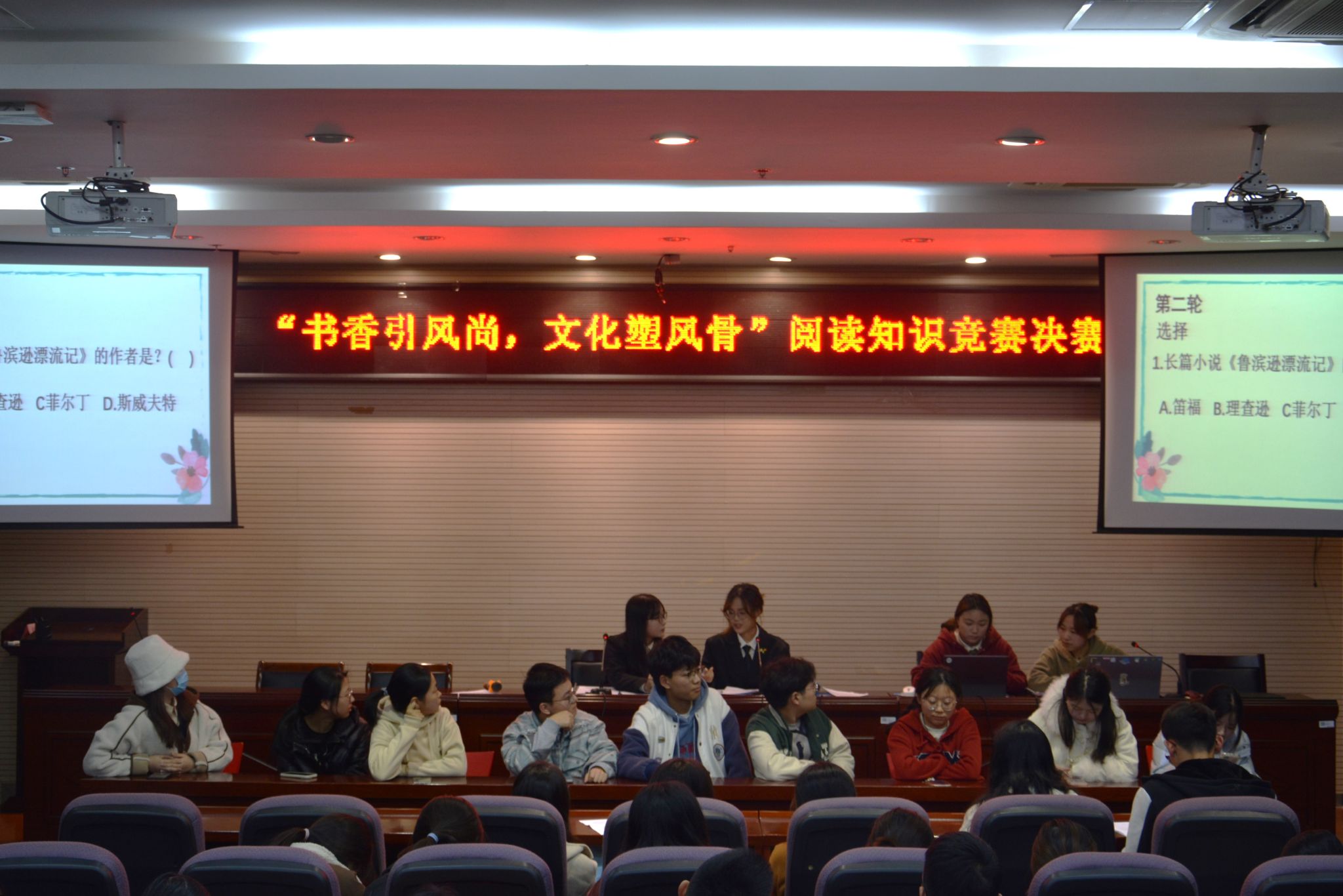 为引导学生积极阅读经典,从阅读中汲取力量,营造读好书、善读书的书香校园。11月17日晚18:30,在幕府校区图书馆报告厅,我校图书馆与yl88858永利集团联合举办了“书香引风尚,文化塑风骨”阅读知识竞赛活动。学科服务部副主任张贤、yl88858永利集团团总支书记高欢欢,与各年级学生代表百余人参加了此次活动。