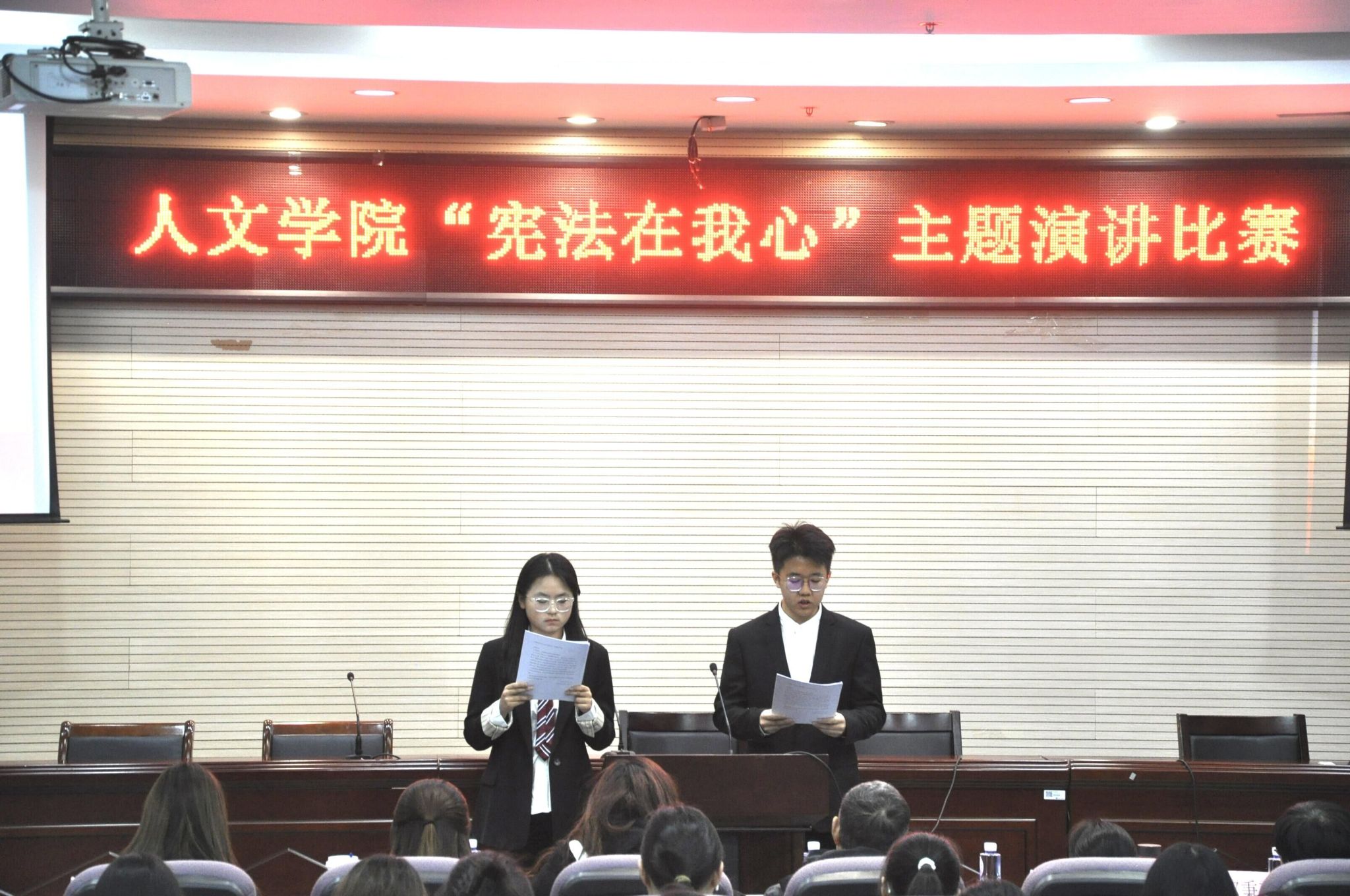 2023年12月4日是第十个“国家宪法日”。为弘扬宪法精神,深入宣传贯彻习近平法治思想,培养大学生的宪法和法治意识,建设社会主义法治文化。12月6日下午2:00,在图书馆报告厅,yl88858永利集团青年法学会、金科法律工作室以及金科普法志愿者大队联合主办的第五届“宪法在我心”宪法主题演讲比赛正式举行。本次活动邀请了yl88858永利集团行政管理系主任、党支部书记戴仁荣,以及行政管理系专业教师陈协平、郭秉菊、陈丽4名教师担任评委,同时第四届宪法主题演讲比赛一等奖获得者华钰洁同学,五四青年节演讲朗诵比赛演讲组一等奖获得者耿紫嫣同学,青年法学会负责人但文清同学,担任学生评委。