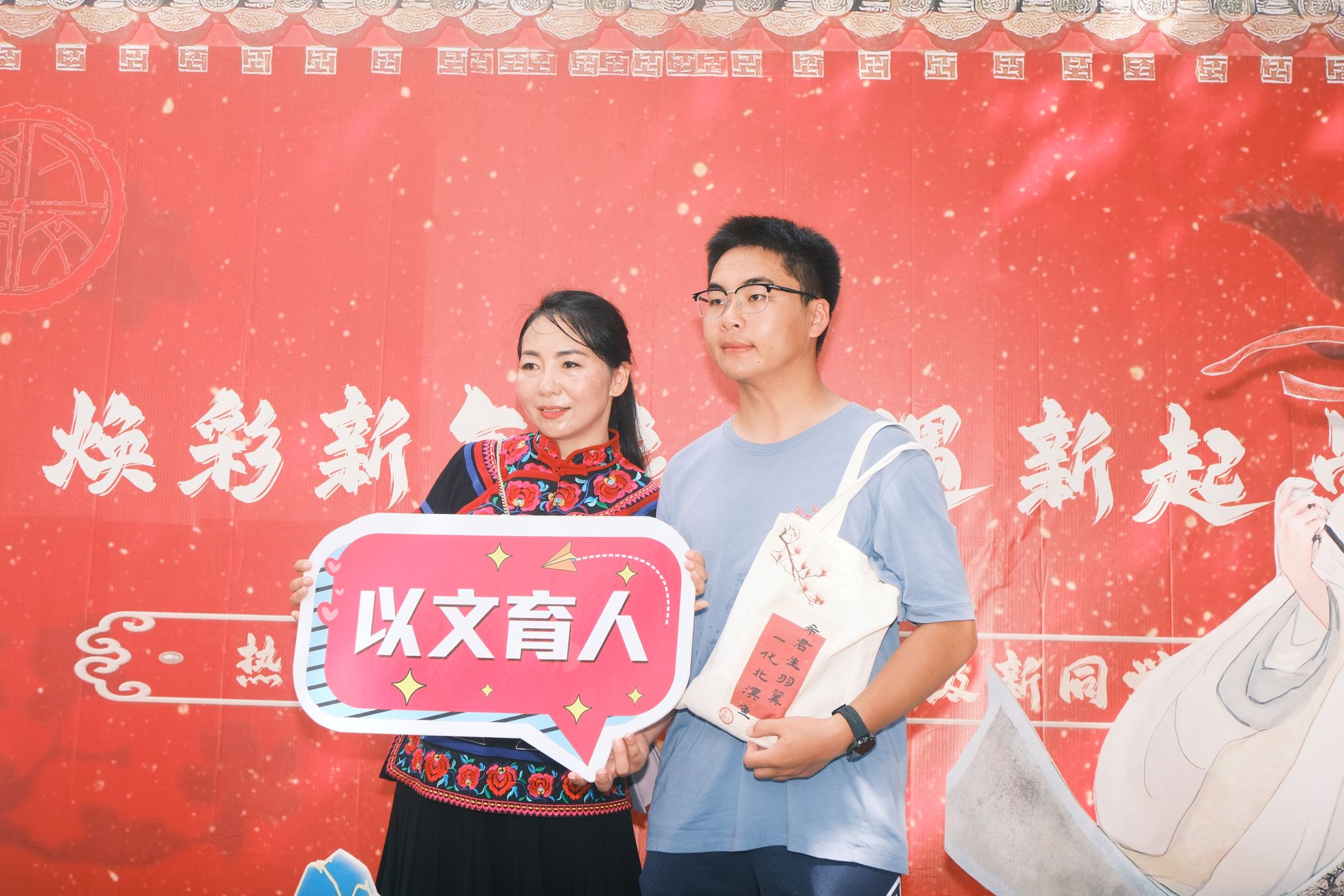 在图书馆前精心布置的迎新现场,人头攒动。热烈而喜庆的中国红,富有人文气息的书法条幅,激励人心的诗文,让初来乍到的新生们感受到人文大家庭的力量和温暖。学院党委书记吴轶军、院长张维亚、副书记董宇与班主任、辅导员老师们来到现场,为新生们送上入学大礼包,更以亲切的话语鼓励大家珍惜大学时光,勇于探索未知,传承人文精神。