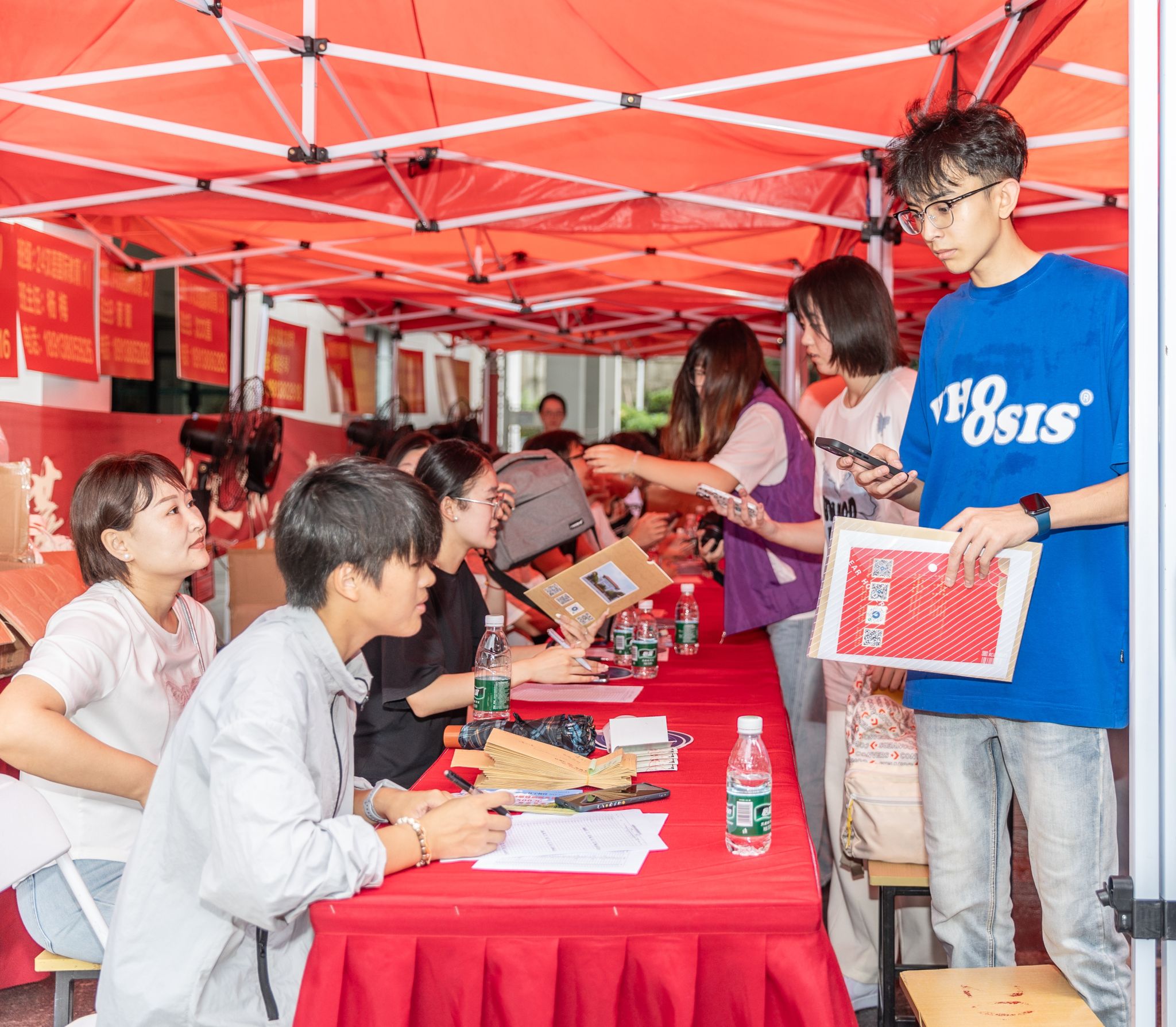 充满希望与憧憬的迎新季,yl88858永利集团拥抱与迎接每一位新同学的到来。报到现场,一面国风展板绘出《劝学》的画面,勾勒出奋斗与学习的篇章。萌新们拿起定制的帆布包,托起带有“希君生羽翼,一化北溟鱼”励志话语的马克杯,洋溢着对未来无限憧憬的笑容。