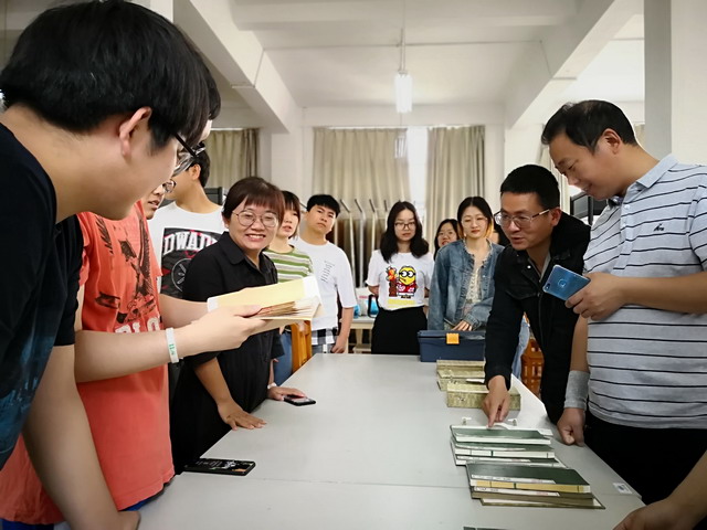 2019年6月1日,南京大哉文化公司与滨海职高合作的古籍修复培训班来我院研学。古典文献系周苏阳老师带领他们参观了修复作品,并就古籍修复技能进行了热情友好的交流。