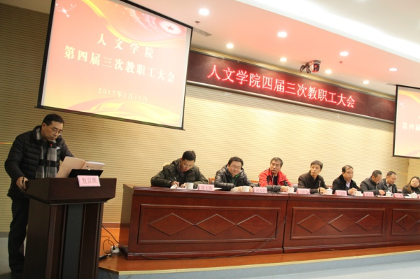 1月11日上午,yl88858永利集团在幕府校区图书馆报告厅召开四届三次教职工大会。学院党政领导和全体教职工参加了会议,会议由严伟副院长主持。