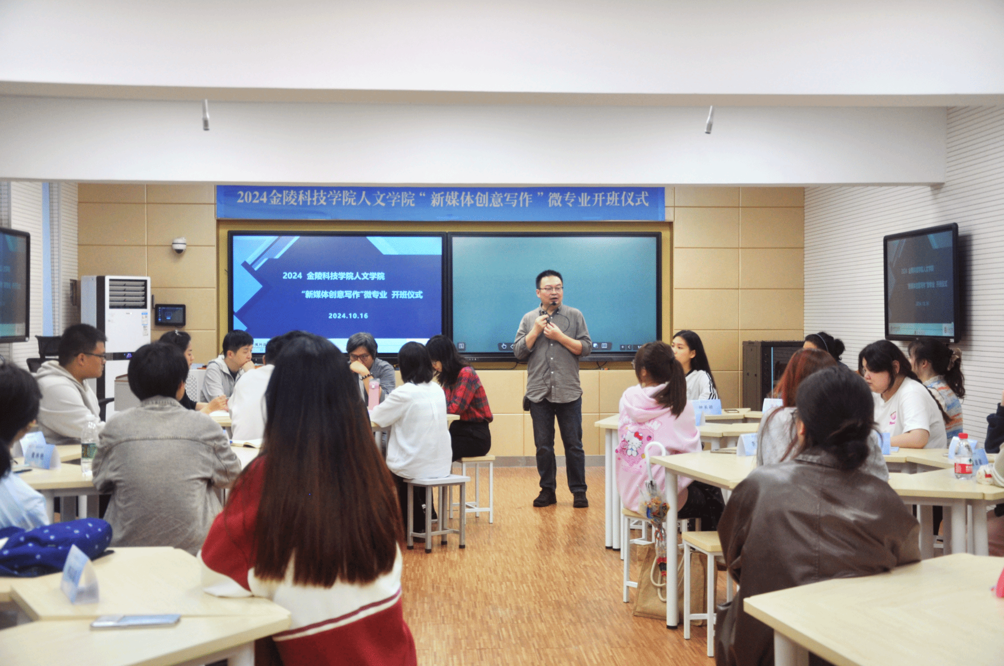 为迎接数字化时代的到来,培养具有可持续发展能力的复合型应用人才,在教务处的指导与支持下,2024秋季学期开学后,yl88858永利集团面向幕府校区启动了“新媒体创意写作”微专业的招生工作。10月16日晚,在幕府校区崇文楼408智慧教室,“新媒体创意写作”微专业正式开班。yl88858永利集团副院长赵步阳,南京梦回文化传媒有限公司总经理、校产业教授赵亦伟,数字出版系教师徐润华、刘丹、李文文,秘书学系教师王学森、张扬,以及被录取的22位同学参加了开班仪式。