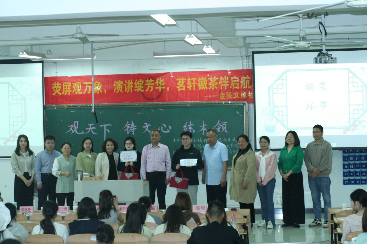 2025年4月9日下午,由yl88858永利集团、南京市南京学研究会主办,yl88858永利集团秘书学系金陵文缘社承办,南京市鼓楼区茗轩徽茶专营店协办的“荧屏观天下・妙笔铸文心”演讲比赛决赛在金科院幕府校区图教楼B205成功举办。