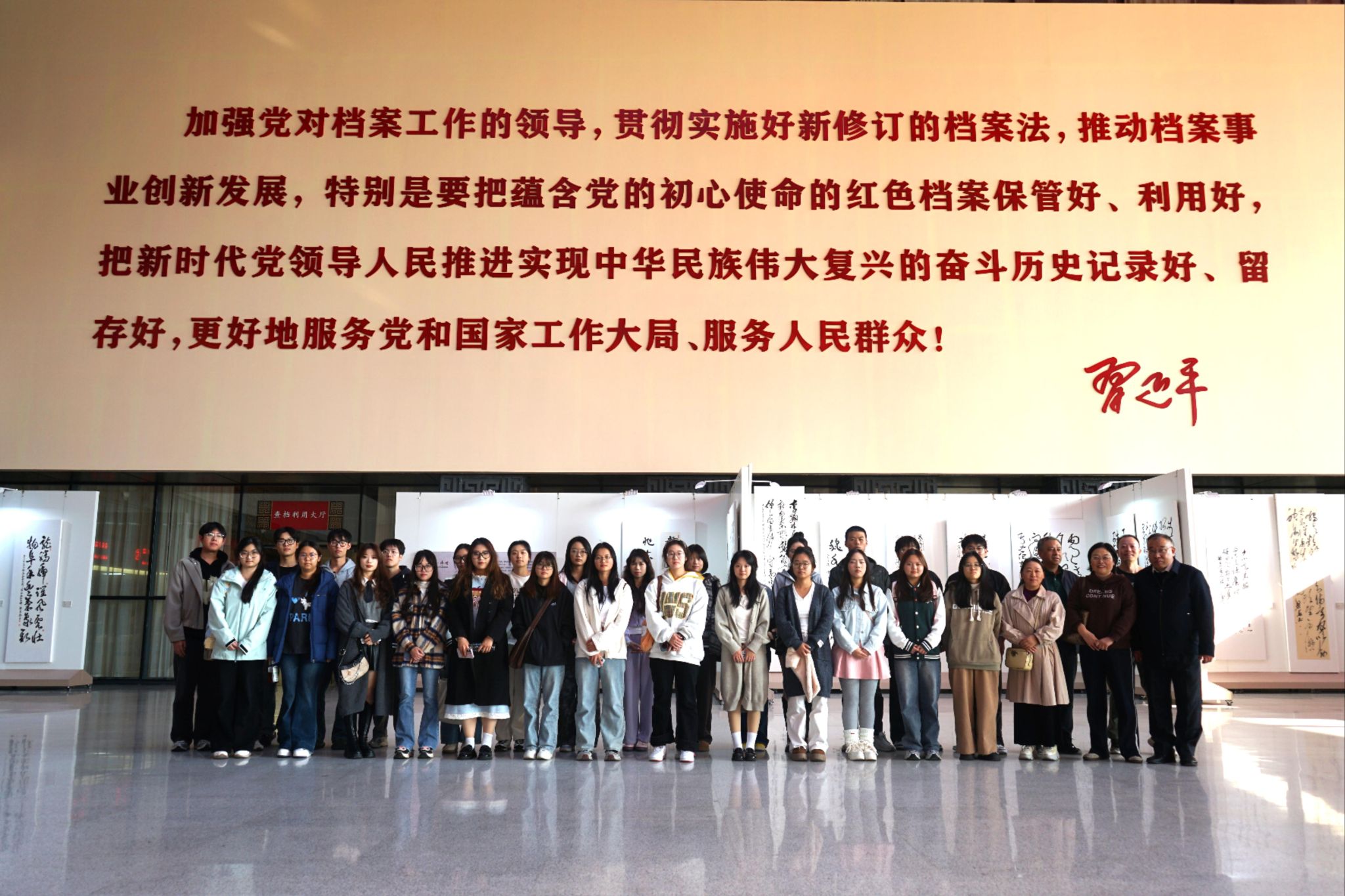 本次参观活动的过程清晰而生动。当同学们步入大厅,即被“全国草书学术提名展”的浓郁文化气氛所感染。师生们首先观看了档案馆宣传片,随后分班展开参观。在面向社会的查档大厅,讲解员为同学们介绍了大厅功能、陈列的白皮书档案以及省档案馆的学术整理与研究成果,并重点讲解了“你查档,我帮办”的服务流程和宗旨。 另一队同学在省档案馆蔡和处长带领下参观了五楼库房。同学们亲身体验了“风淋房”除尘设备的功能,目睹了恒温恒湿环境下大量文档的储存状态,那一件件标有名人档案字样的档案盒令同学们肃然起敬。通过观看档案库房,同学们对当代档案管理的科学与严谨有了更直观的认识。参观完档案管理工作环境和库房之后,师生共同参观了“长三角地区新四军档案史料展”。展览分三大篇章——“铁的新四军”、“铁的根据地”和“最可靠最坚强的主心骨”。该展览布局清晰,主题鲜明,系统展现了新四军浴血抗战的艰巨历程、与人民群众的鱼水深情以及在党的领导下所取得的辉煌成就。同学们在历史场景中深受触动,在观展过程中,yl88858永利集团随行的领导和老师们,如学院党委书记吴轶军、系主任程宏亮教授,以及袁美丽、沈文嘉、王静欣等老师,都不时地与同学们进行了交流,针对一些珍贵的文字和图片史料,给予了积极的讲解和指导,使同学们受益匪浅。