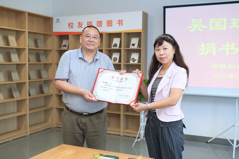 刘永彪对吴国璋校友心系母校事业发展表示衷心感谢。他指出,“立身以立学为先,立学以读书为本”,图书馆是当代大学生的精神坐标,是他们汲取知识、开拓视野的重要场所,对他们正确价值观的养成具有重要作用。校友向母校捐赠图书,既是丰富馆藏资源的善意之行,也是回馈母校培养的感恩之举,这些图书给莘莘学子带来源源不断的精神养分,将成为他们成才路上的铺路石。他强调,校友是我校的宝贵资源,欢迎活跃在各个领域的校友们常回家看看,成为我校“江苏一流、国内高水平应用型大学”建设路上的同行者和见证人。